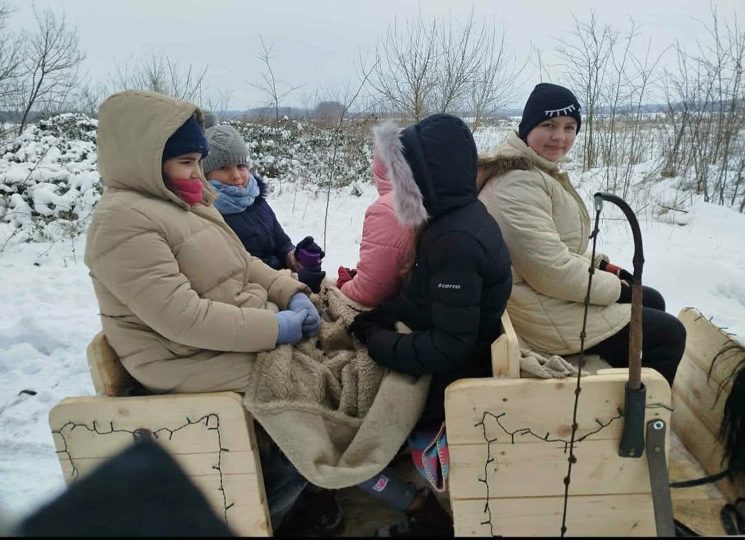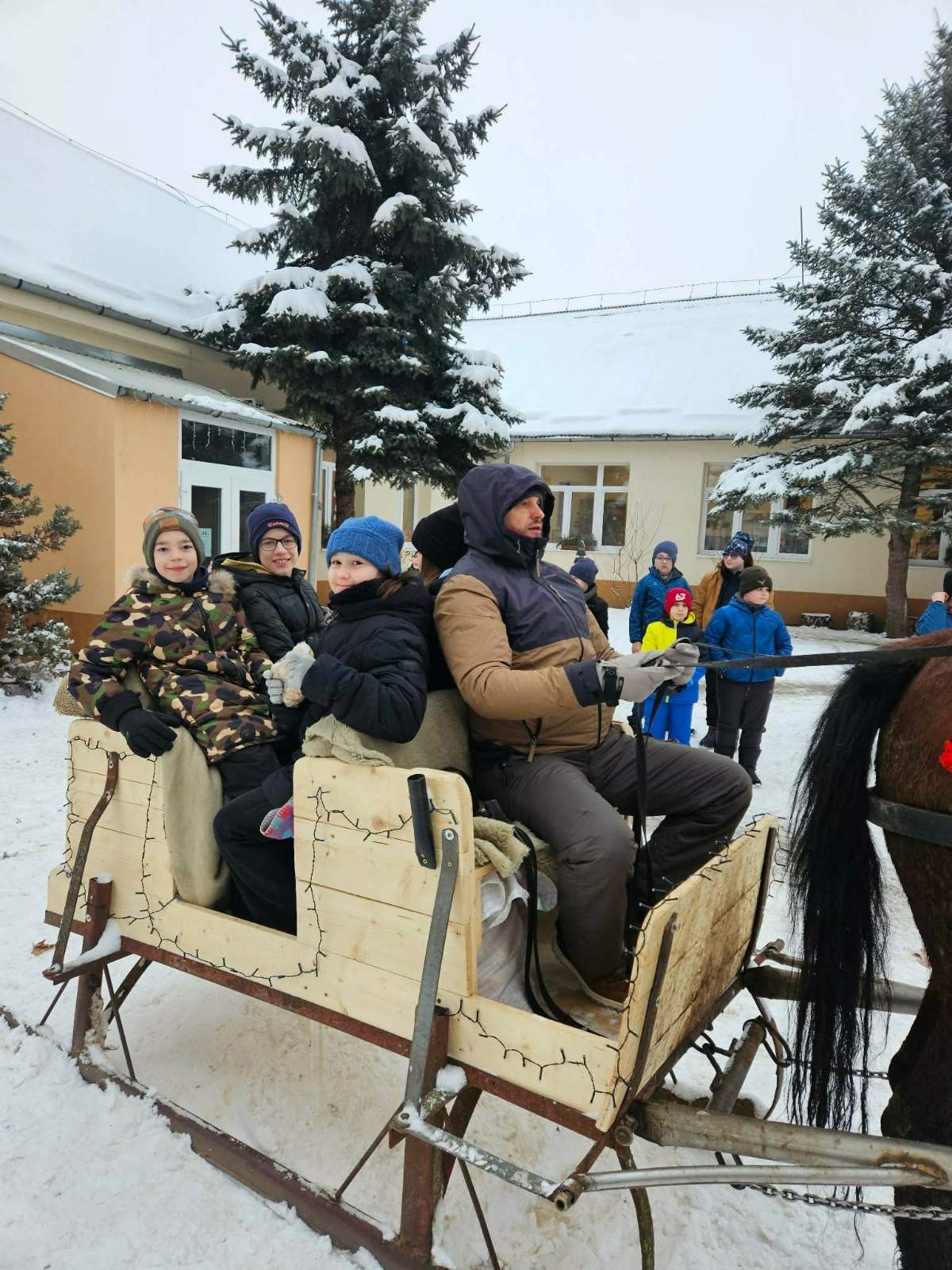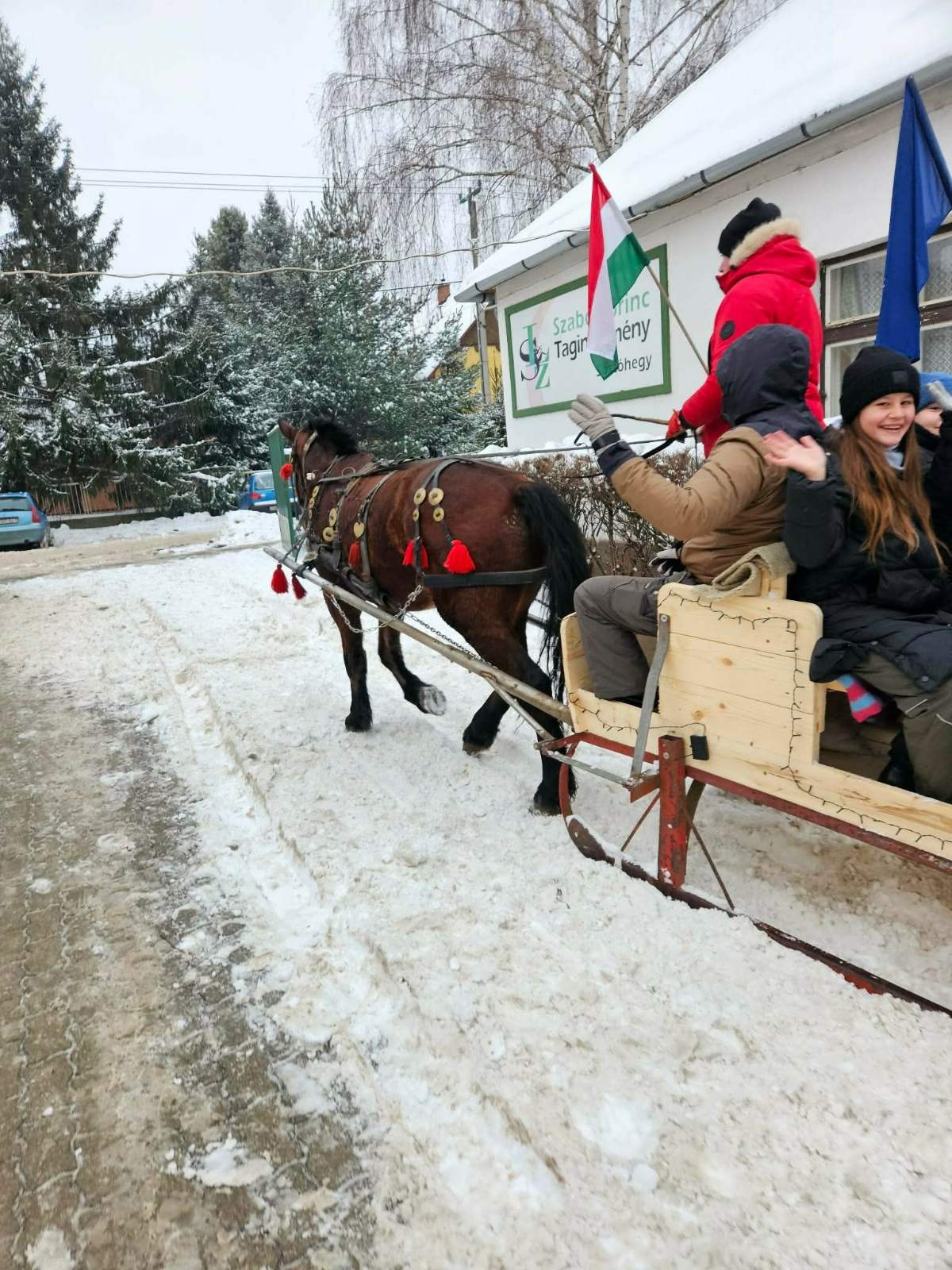 A frissen hullott hó, a lovak patája alatt ropogó fehérség és a szánkó csilingelő hangja egyszerre idézte meg a régi telek hangulatát és a természethez fűződő bensőséges kapcsolatot. A gyerekek számára ez nem csupán különleges program volt, hanem élő tananyag is: az ötödikesek éppen a természet és a vadon élő állatok téli viselkedésével foglalkoznak, így a tapasztalatok most valódi élménnyé íródtak át.